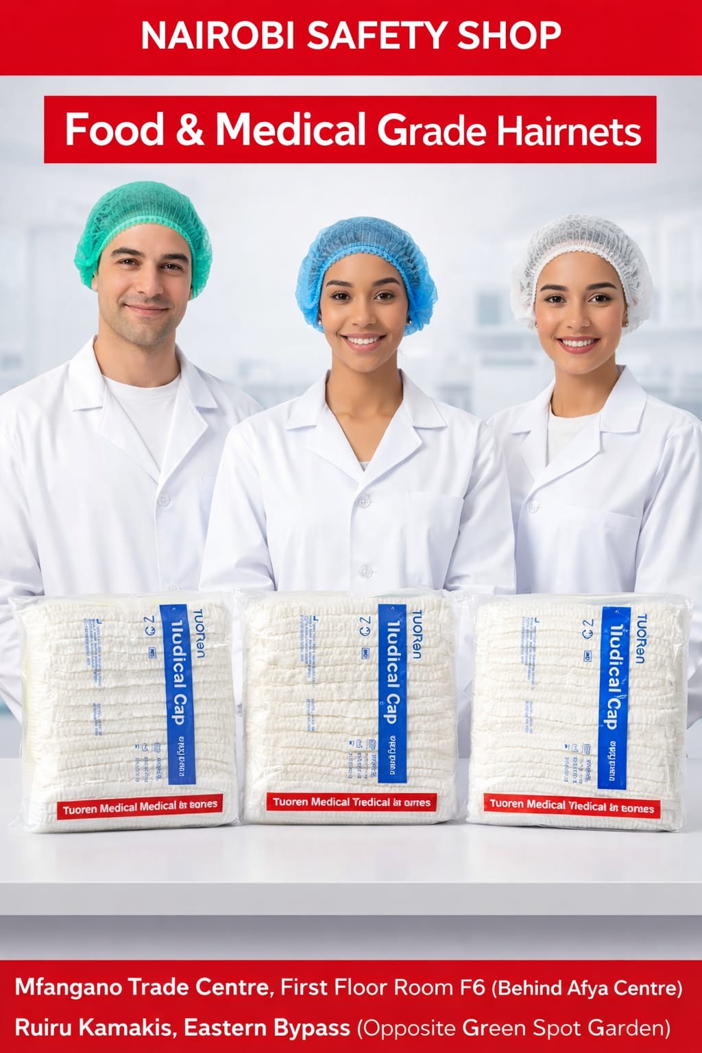 Whether you operate a hospital in Nairobi, a bakery in Ruiru, a food processing plant along Eastern Bypass, or a laboratory anywhere in Kenya, our disposable hairnets provide reliable protection and professional presentation.